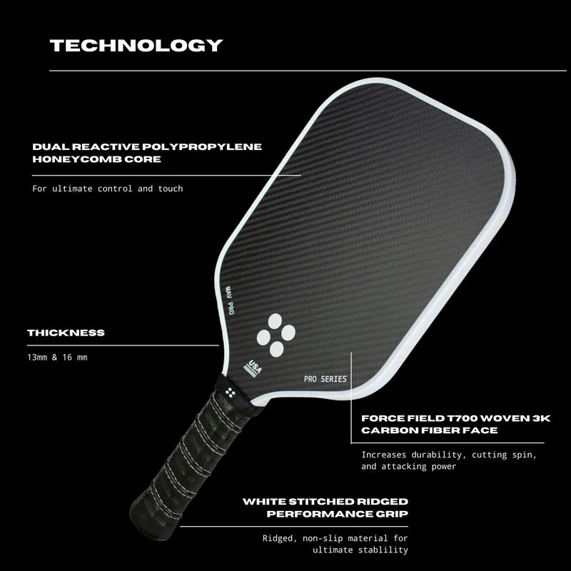 The Holbrook Mav Pro paddle enhances attacking power, controlled finesse, and cutting spin to your game